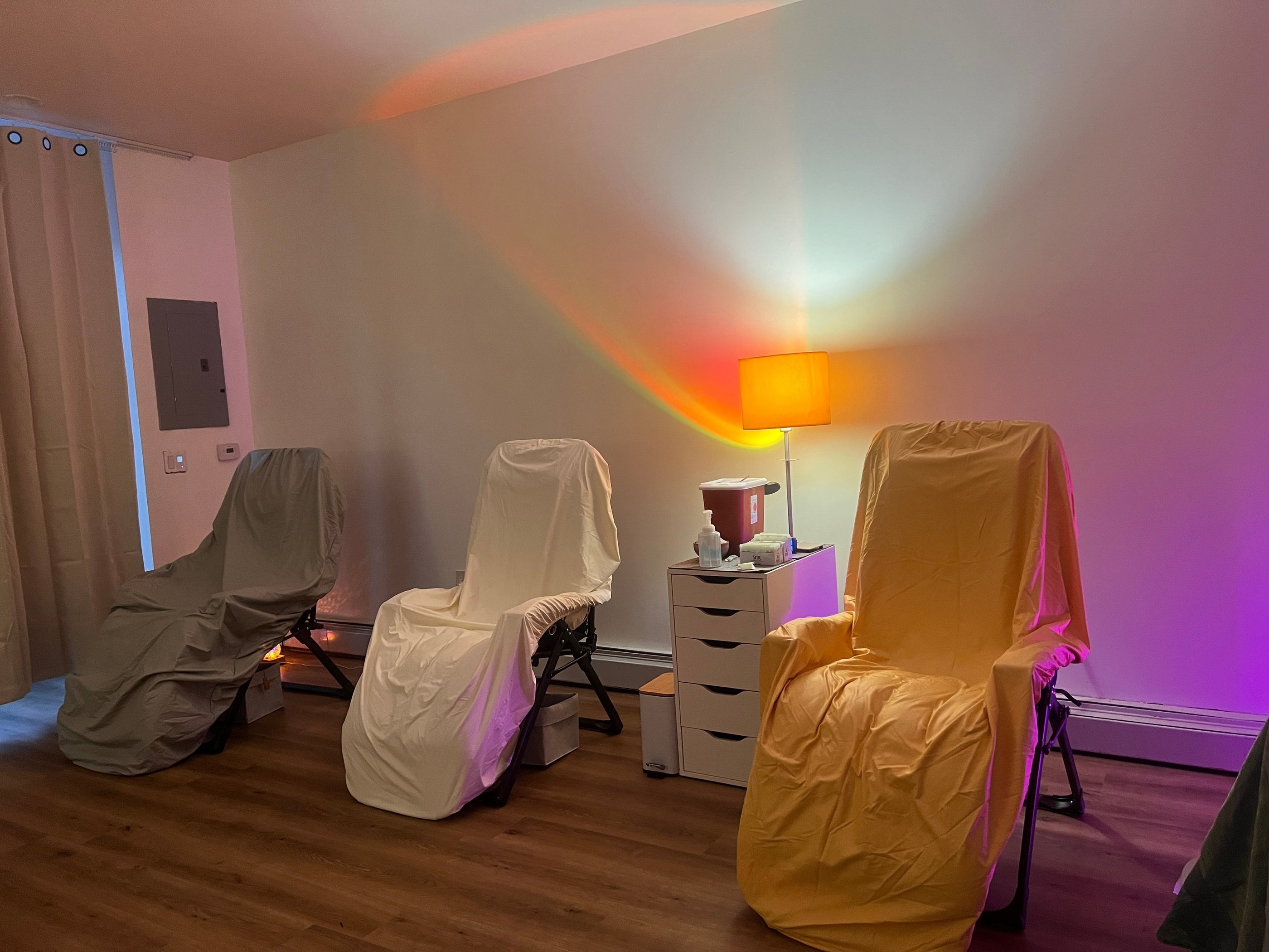 In the future we may have semi-private treatments available outside of regular clinic hours. Why? Because it would greatly increase the price to provide 1:1 care, because we love seeing a full room of people resting together, and because the quality of care is not dependent on the amount of time we have together!