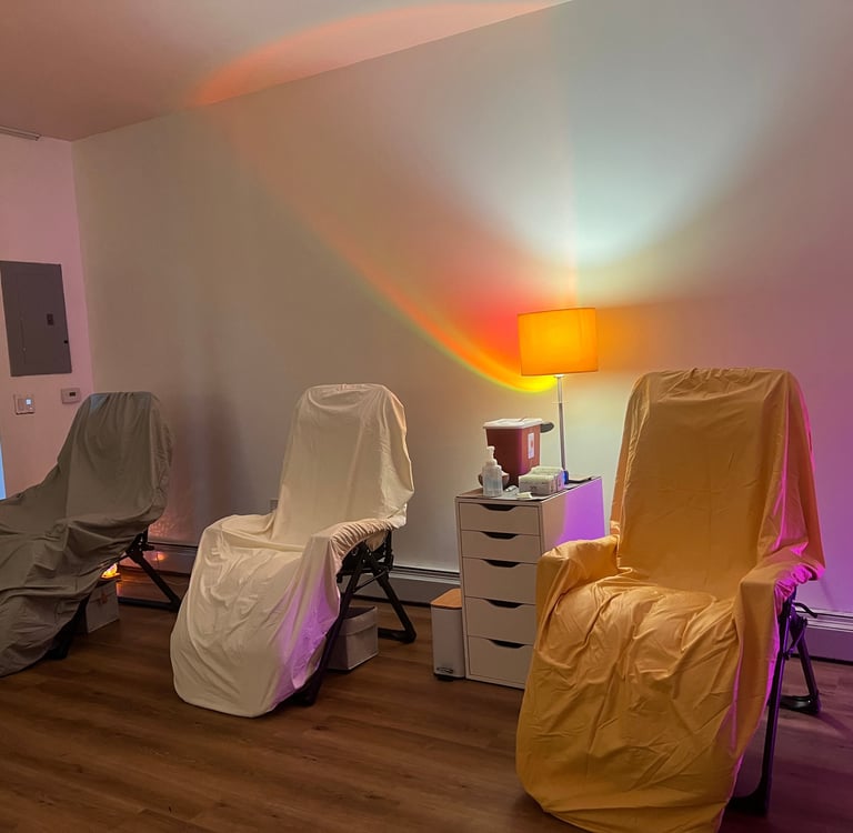 During treatment, it is common to feel deeply relaxed. Some people describe sensations of heaviness, warmth, tingling, or sleepiness. In our clinic’s community setting, you may find neighbors, coworkers, friends, and strangers resting quietly together. The shared space creates a calm, collective atmosphere where people can take time to pause, reset, and care for themselves.